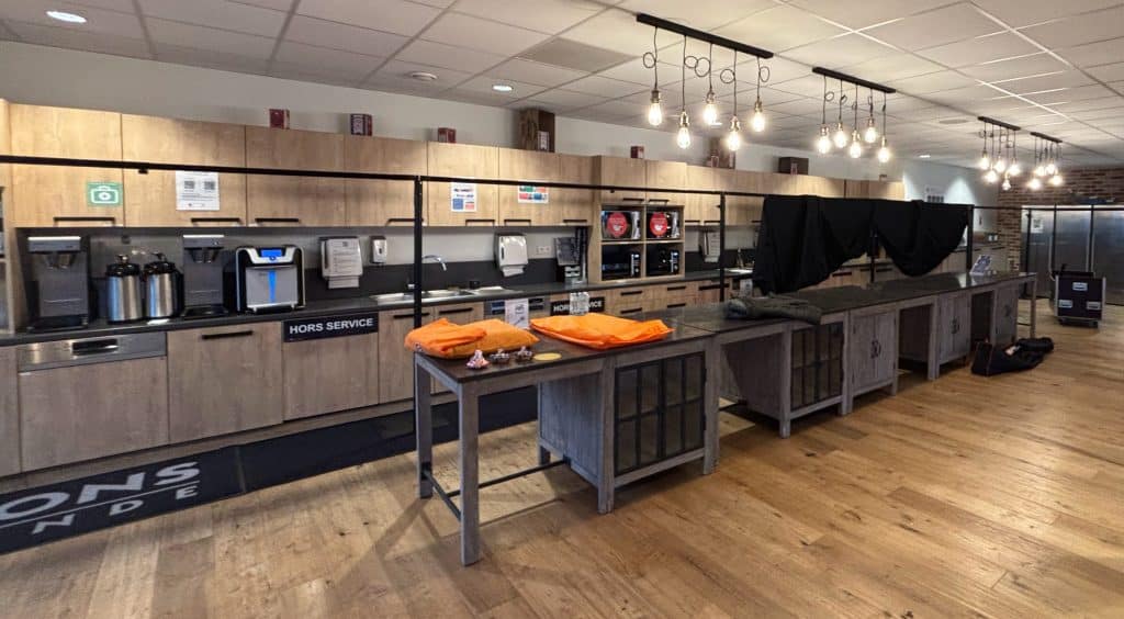 - Mise en place d’une cuisine ou d’un espace traiteur éphémère et discret.