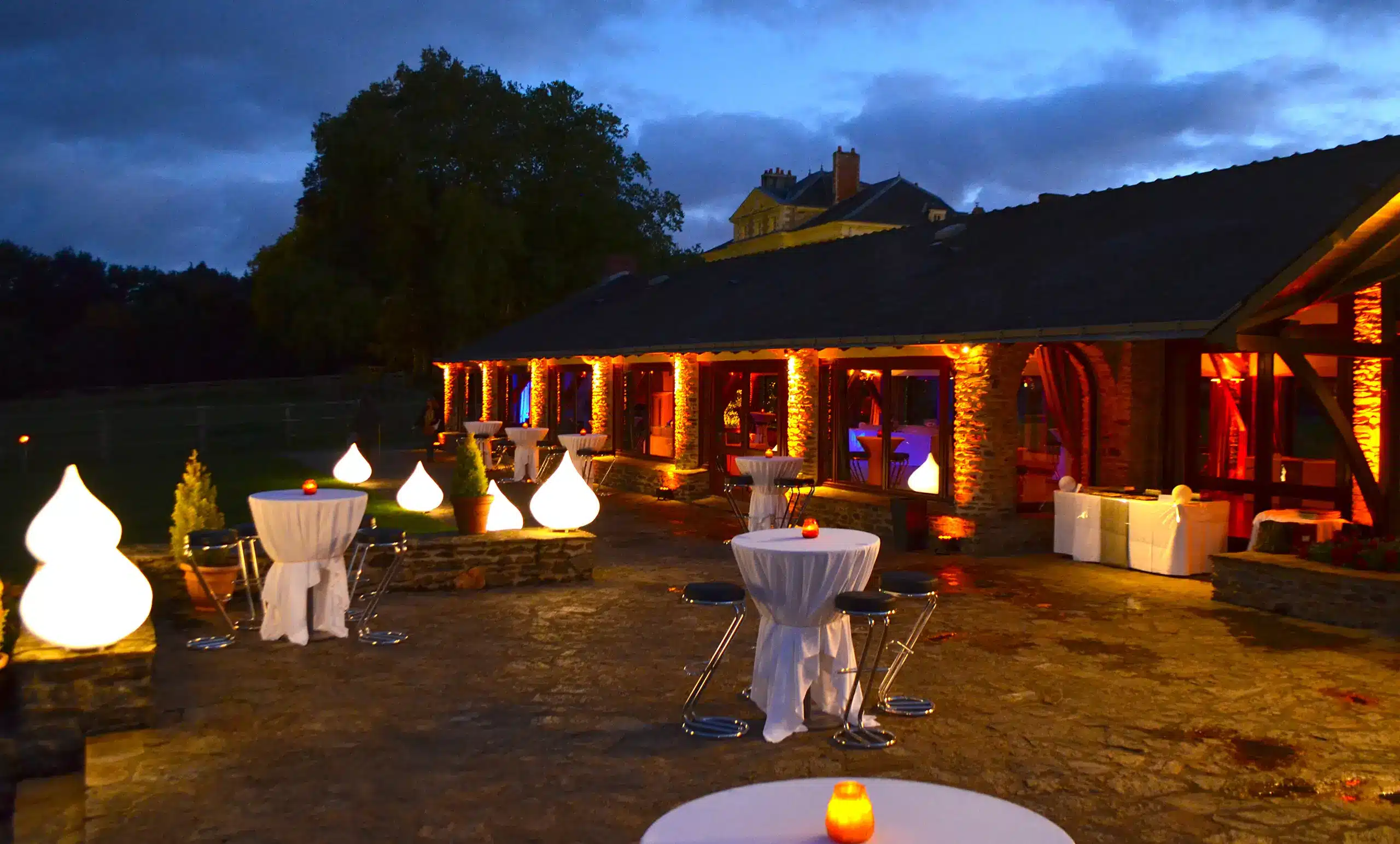 Le parc ou le jardin de votre lieu de réception est un décor vivant qui ne demande qu’à être révélé. La mise en lumière des jardins permet de transformer la végétation en une véritable architecture lumineuse.